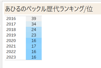 突然ですがこちらは2016~2023年のペックルの歴代ランキングになります。