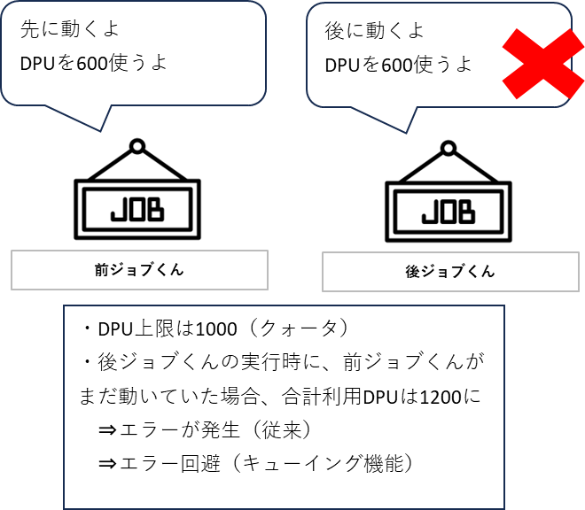 今回のアップデートによって、従来サービスクォータやリソースの利用上限到達によって発生するジョブの異常終了を、回避できるようになりました。
