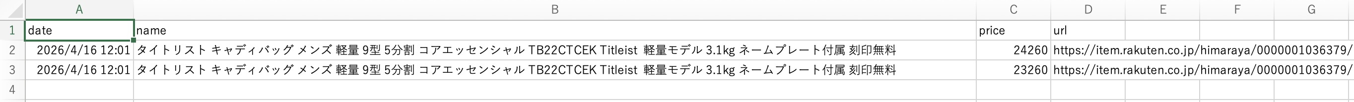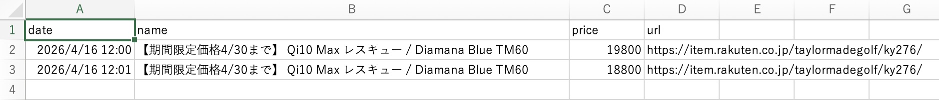 rows.append(["date", "name", "price", "url"])