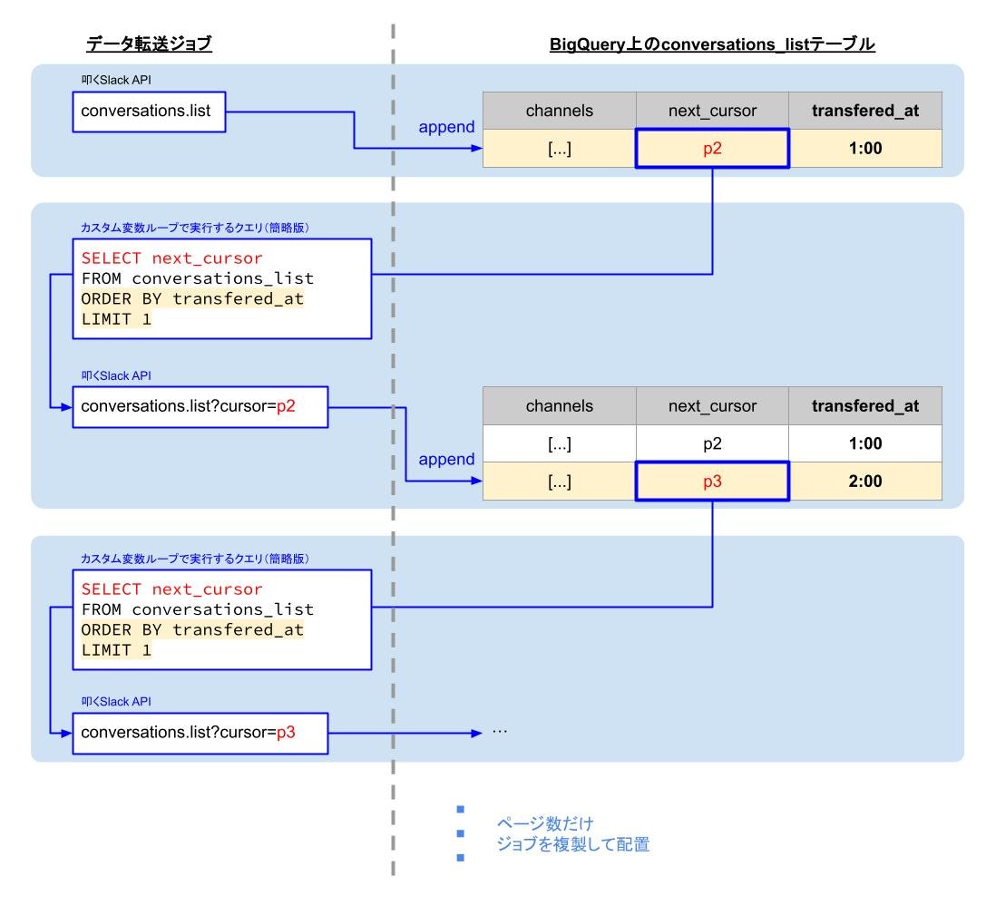 conversations.list APIを叩くためのデータ転送ジョブの2回目以降リクエスト用です。