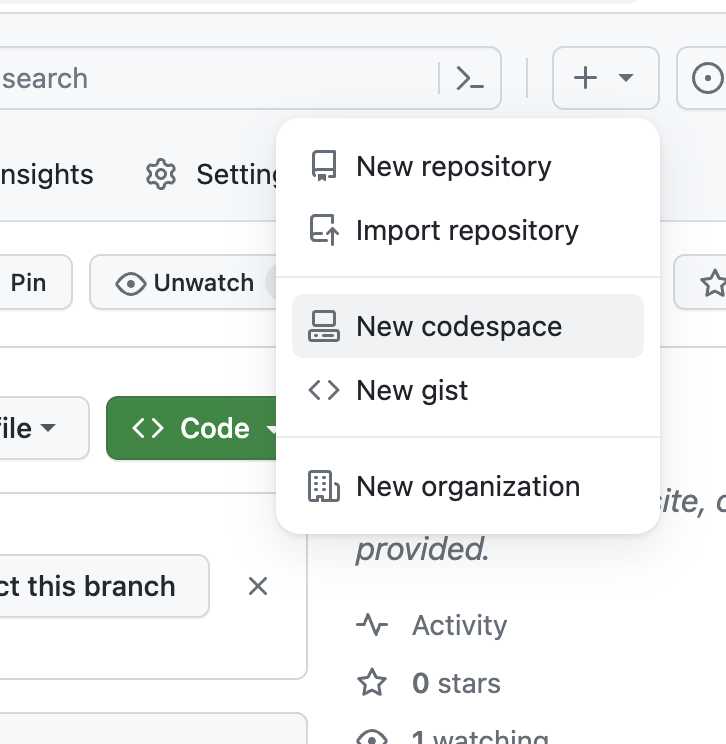 画面右上の+ボタンをクリックし、「New repository」を選択します。