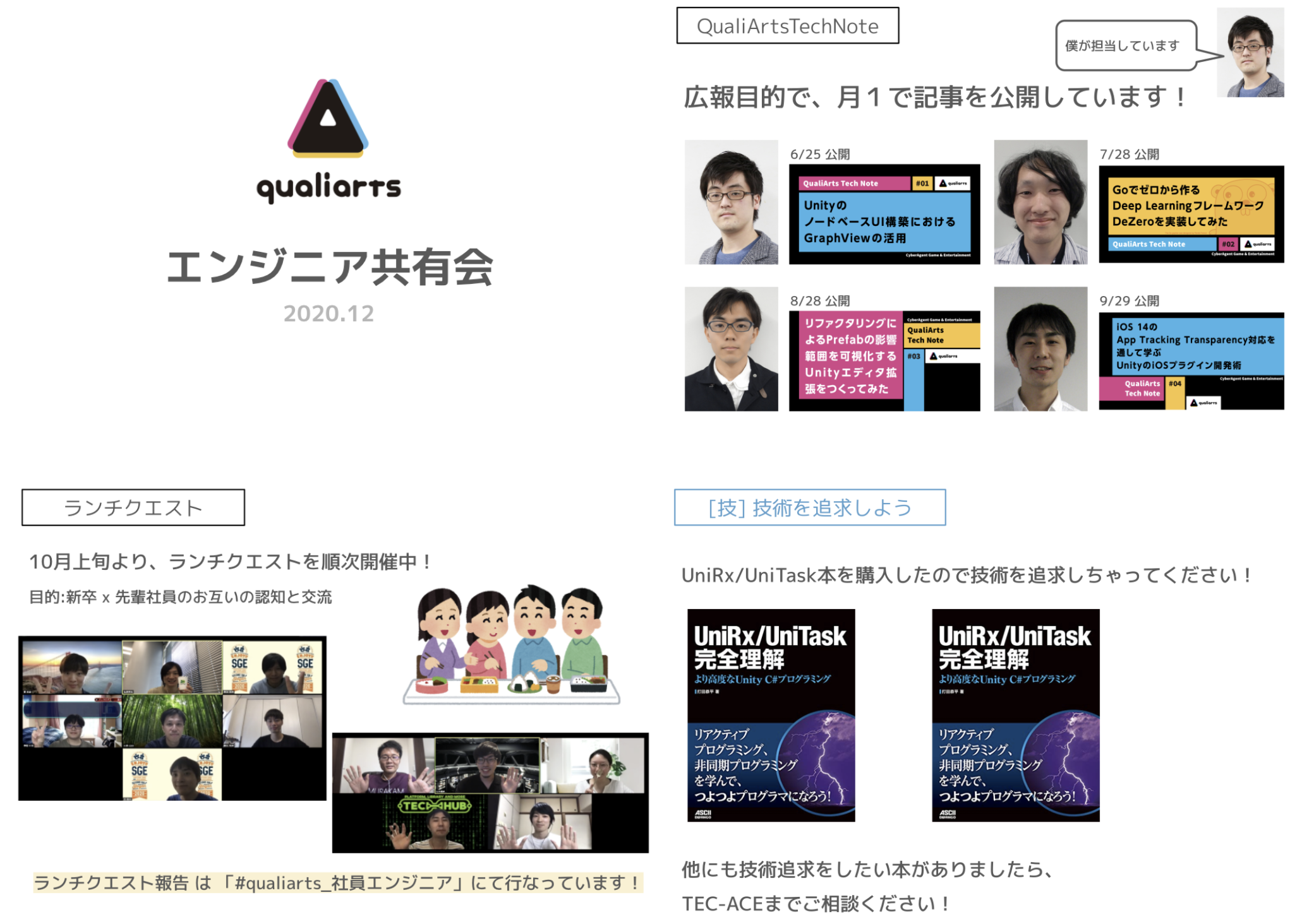 技術ボード「TEC-ACE」の合宿で決まった、QualiArtsエンジニア共有会を始めました。