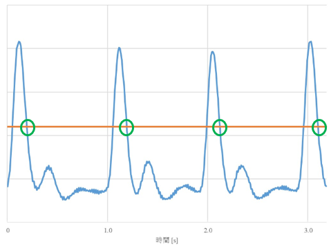 ちょうど緑の丸のタイミングで"Pulse"と出力されるイメージです