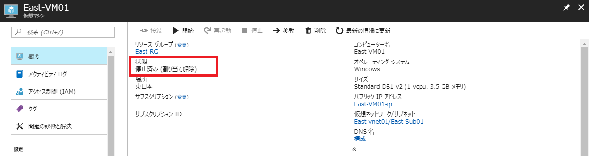 | 仮想マシン | East-VM01 | 移行可能 |