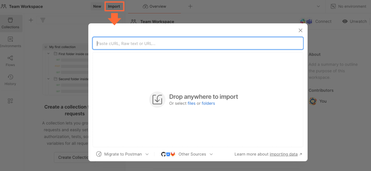 プライマリーワークスペースに、mainブランチのOpenAPIをインポートします。Postmanでは、OpenAPI 3.0と3.1をインポートでき、YAMLとJSONの両方のフォーマットをサポートしてます。