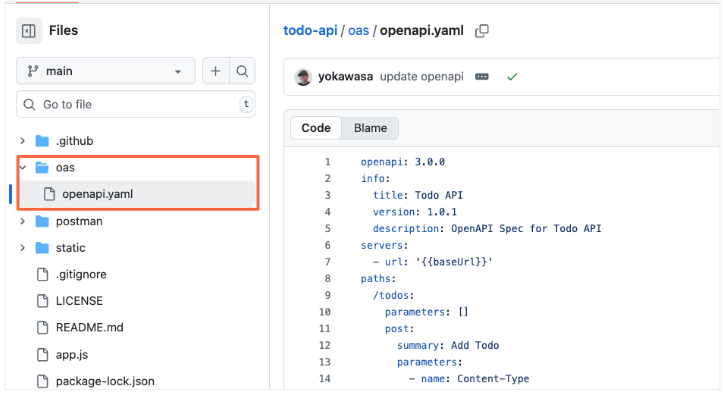 なお、ここでテストに使用するGitHubリポジトリには、次のようにAPIサーバーのソースコードとOpenAPI定義ファイルが含まれています。