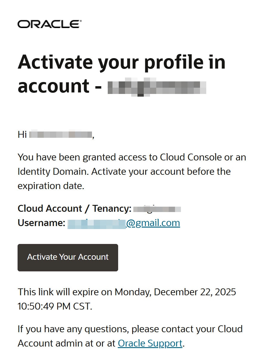 OCIのテナンシーに対してユーザー登録を行うとそのユーザーに対してActivationを促すメールが飛び、そこからActivationを行うとパスワードの初期化をする画面になります。