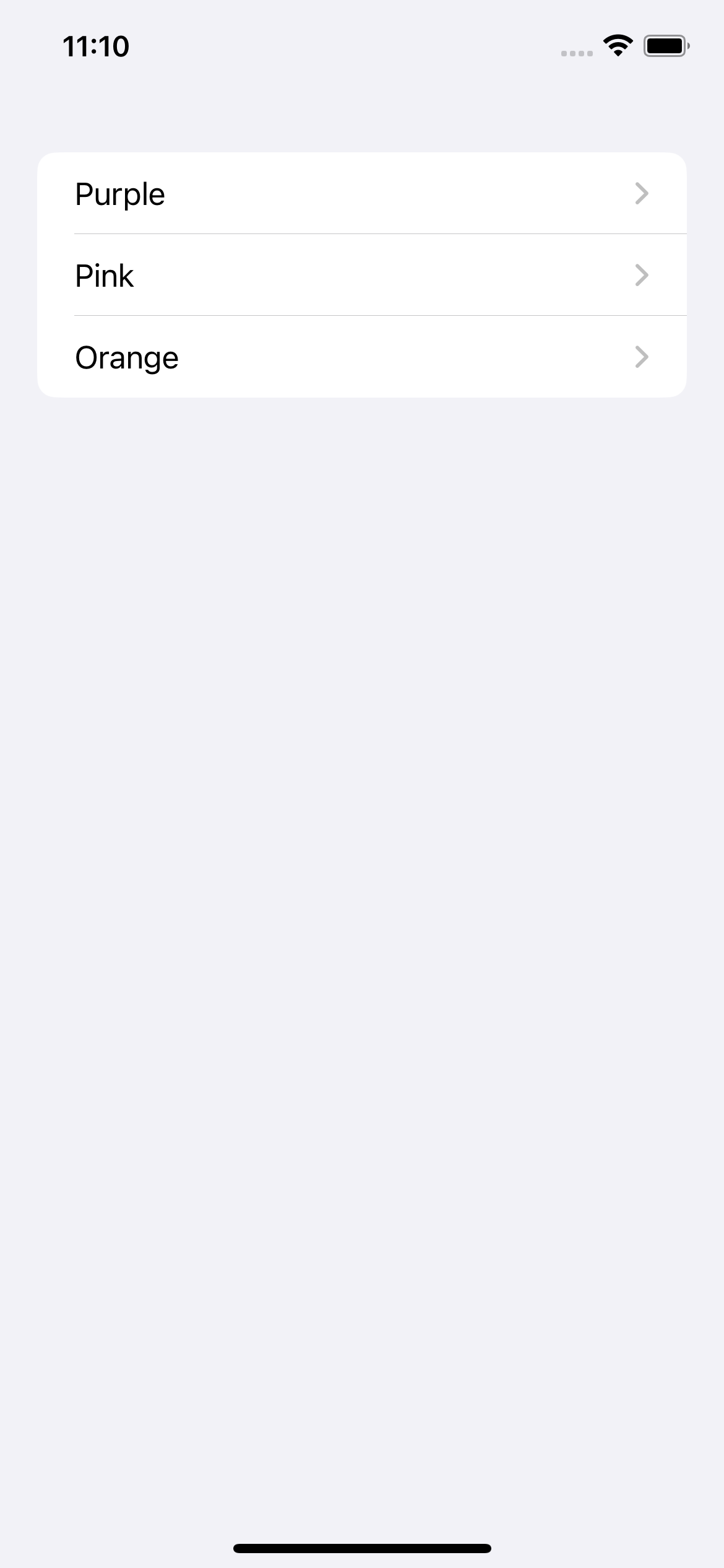 NavigationLink("Purple", value: .purple)