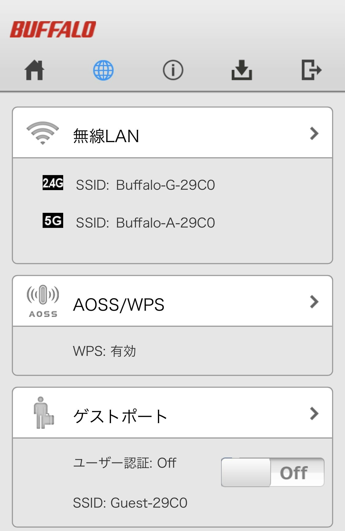 ログインすると、使用しているWi-Fiルーターの設定の確認や変更ができるページに飛びます。