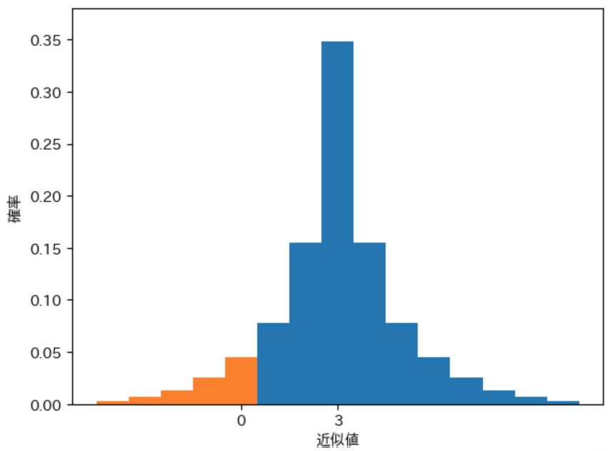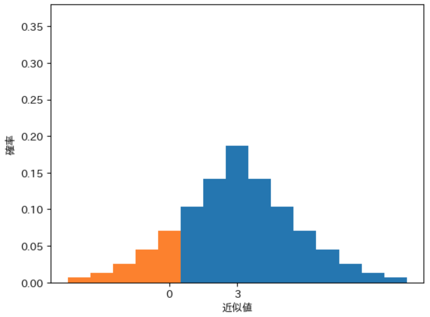 前回の記事では 近似値が -2 に対する 確率を 0.0125 と計算 しましたが、上記では 0.012500000000000002 というほんの少しだけ異なる確率が計算されています。