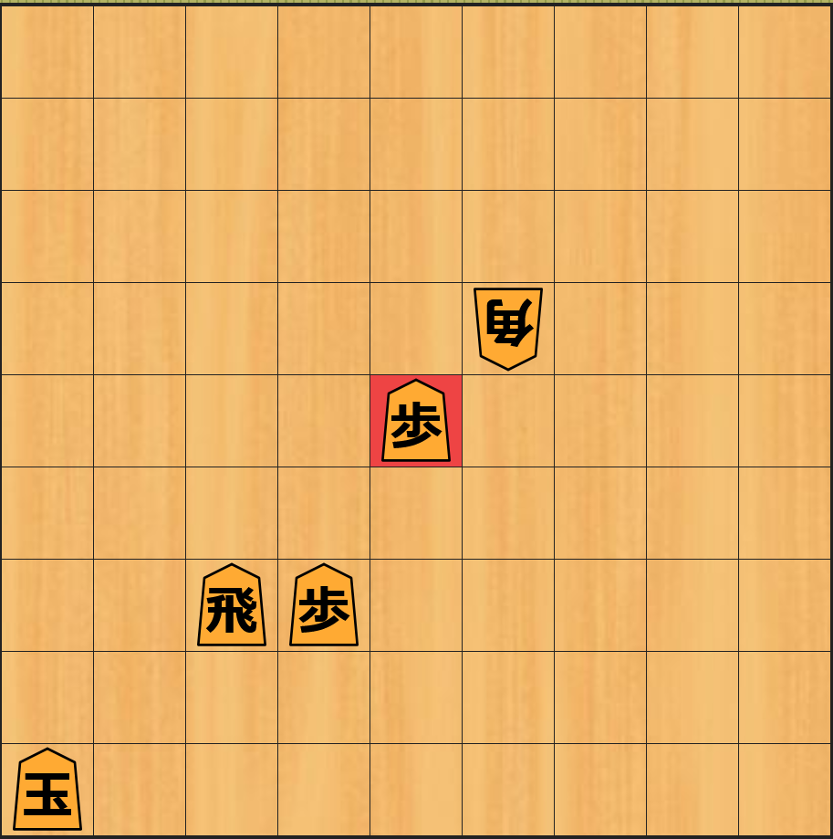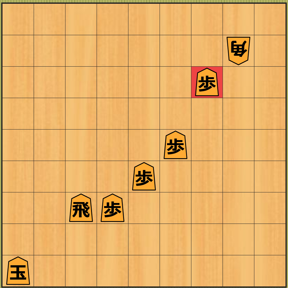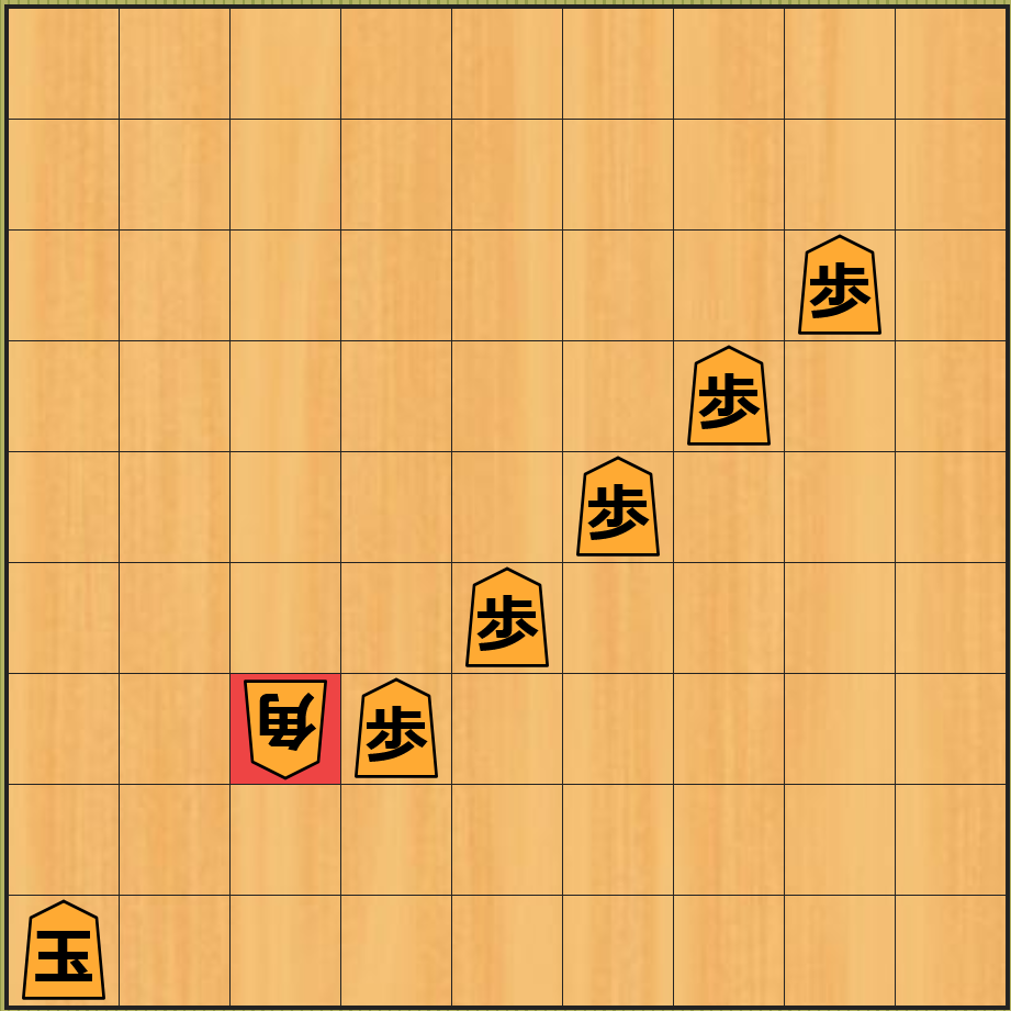 先程の下図の局面 $B$ では、後手の駒 には一つ前に移動できる 歩 と前方向に好きなだけ移動できる 香車 があります。