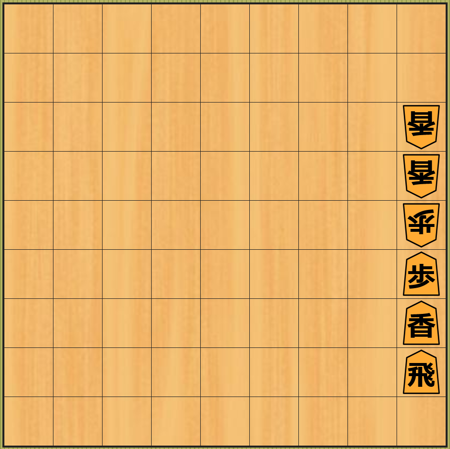 本当は将棋は全部で 40 個の駒を使って遊ぶゲームですが、本記事で例示する局面では 説明に不必要な駒は配置しない ことにします。また、将棋には 持ち駒 と 成り というルールがありますが、本記事では 持ち駒も成りも行わない ものとします。