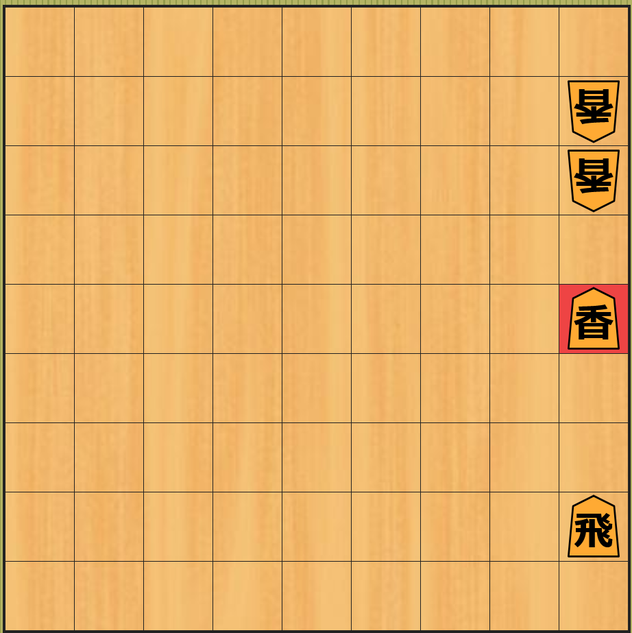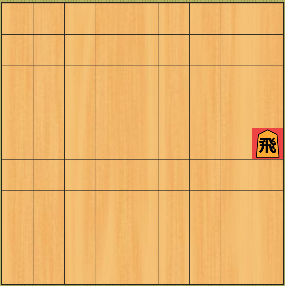 局面 $N$ では 先手の駒は飛車しかない ので、先手の合法手 は上下左右方向に好きなだけ移動できる 飛車を移動する合法手だけ です。