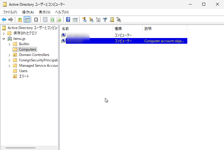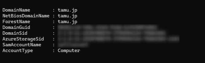 ADのコンピュータアカウントにストレージアカウントが登録されていることを確認します。