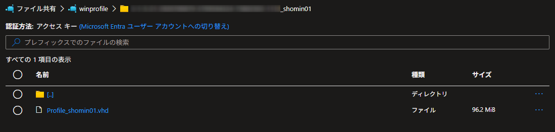 ストレージアカウントにプロファイルが保存されていることを確認出来ました。