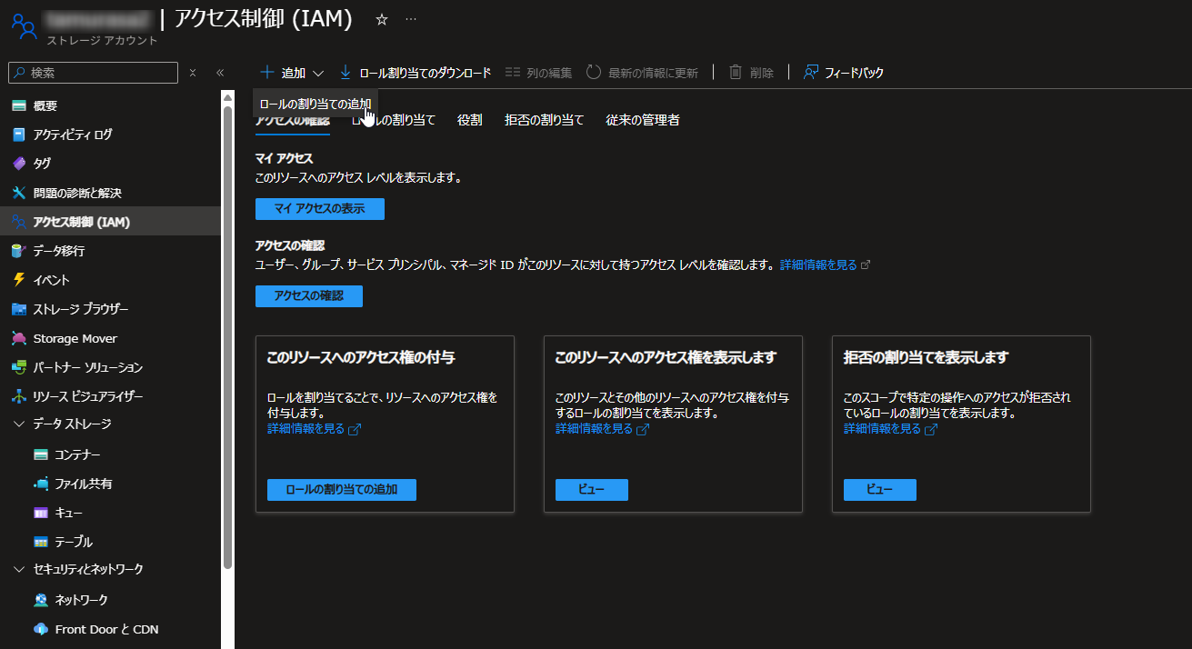 ぼかしていますが下図2行目の方がストレージアカウント名になってます。