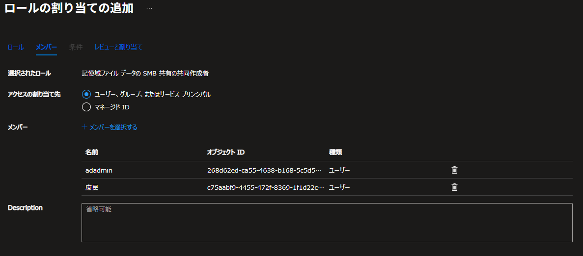 FSLogixを使うユーザ(グループ)のロールをストレージアカウントに設定します。