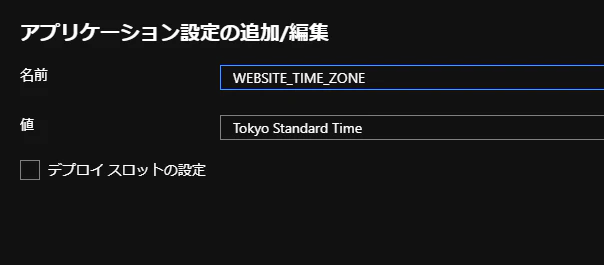 タイムゾーンを日本に変更するため、アプリケーション設定を追加します。