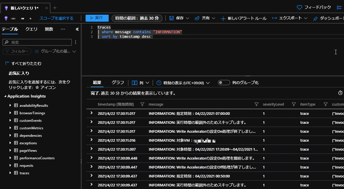 VMディスクでの状態を確認する以外にLog Analyticsでも結果を確認できます。