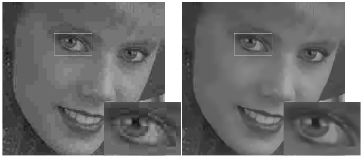 左:JPEG圧縮画像、右:AR-CNNによる処理画像 論文より引用