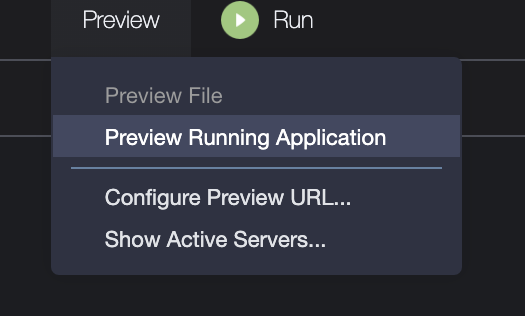 実行が開始しましたら、Cloud9の画面上部の「Preview」を開き、「Preview Running Application」を押下して、実行中のアプリケーションを開きます。