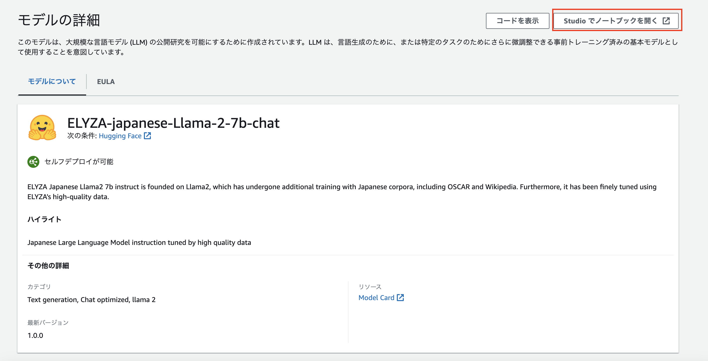 Amazon SageMaker JumpStartを利用して、ELYZAの日本語モデルであるELYZA-japanese-Llama-2-7b-fast-chatを動かしてみました! ELYZAのモデルはBedrockから利用出来ないので中々手を出せていなかったのですが、JumpStartから利用できるようになったことで、かなり利用の敷居が下がったように感じました。これを機に他のモデルもいろいろ試してみたいと思います! 後は、冒頭で紹介したAWSの記事にあった Bedrockのカスタムモデルインポート にもチャレンジしてみたいところです...
