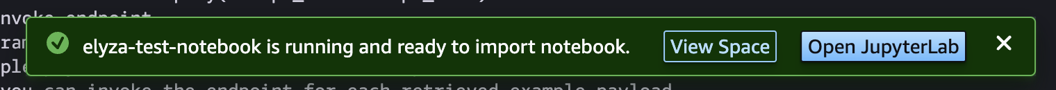 notebookの作成が完了すると、画面下部に以下のダイアログが出るため、「Open JupyterLab」を押下するとnotebookが開きます。