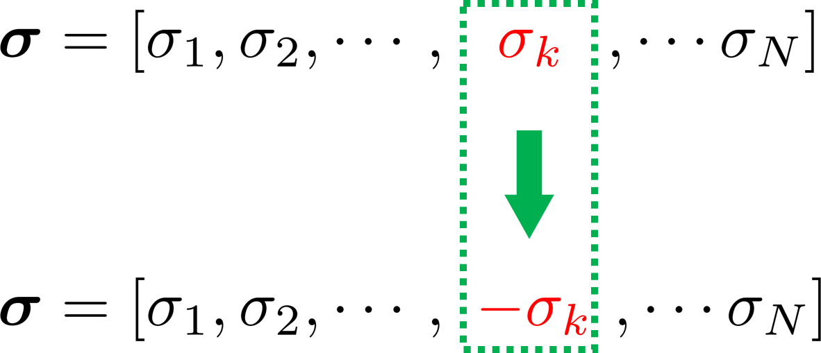 - スピン反転を行う前と後でエネルギーの差分を計算する.