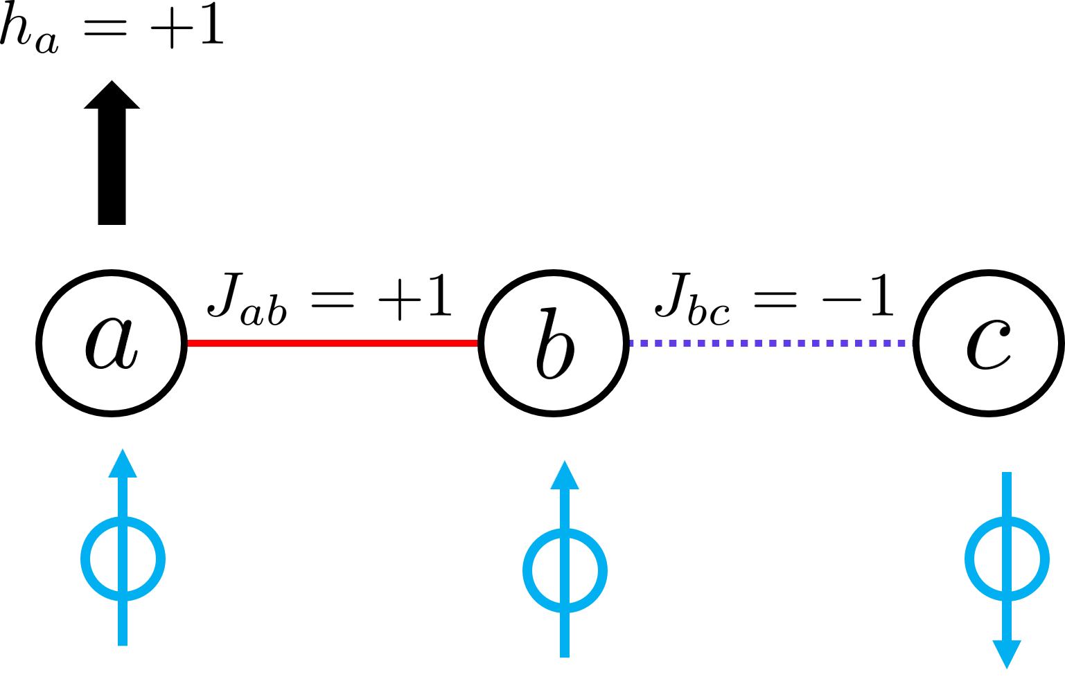 前回の記事と同様に$\ (a,b,c)=(,+1,+1,-1,),$が基底状態です.作成した「sampler.jl」ファイルがあるフォルダ内でjuliaを起動し,アニーリングによってこの基底状態が求められるかテストします.