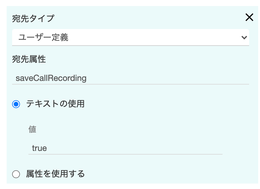 問い合わせ属性の設定を作り, 以下のように設定します。音声の設定から繋げて下さい。