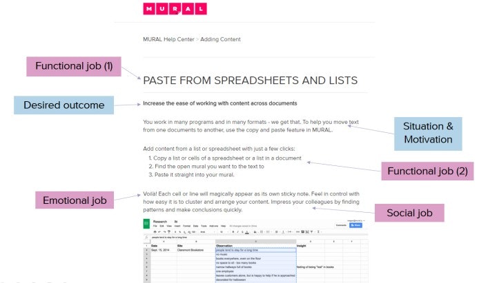 例えば、MURALというプロダクトではヘルプドキュメントをJTBDの構成で記載しています。