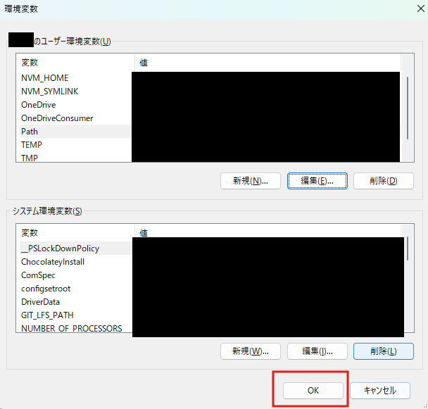 基本的にユーザー環境変数だけいじるようにするのが無難。