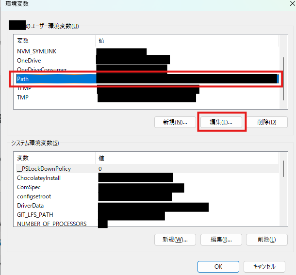 参考: 「システム環境変数」と「ユーザ環境変数」の違い|「分かりそう」で「分からない」でも「分かった」気になれるIT用語辞典