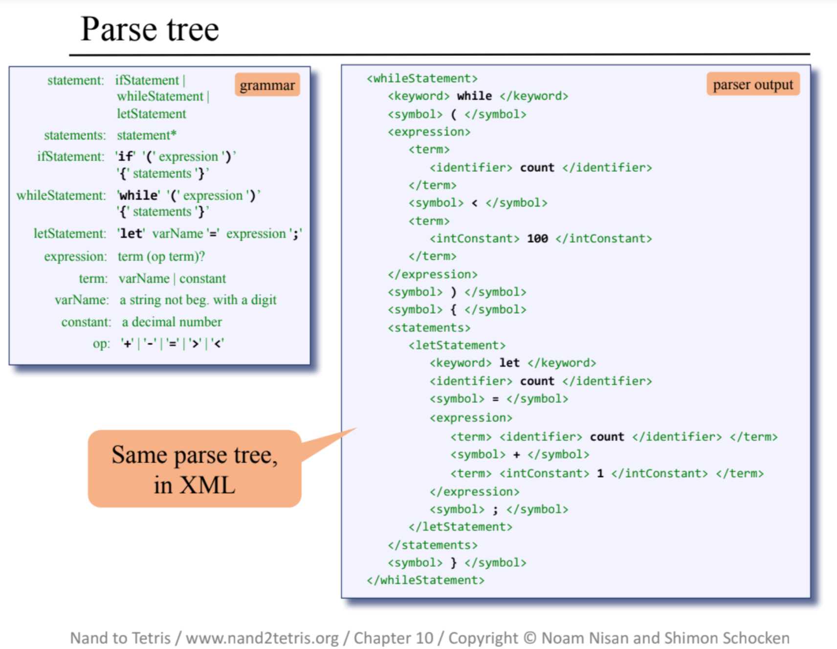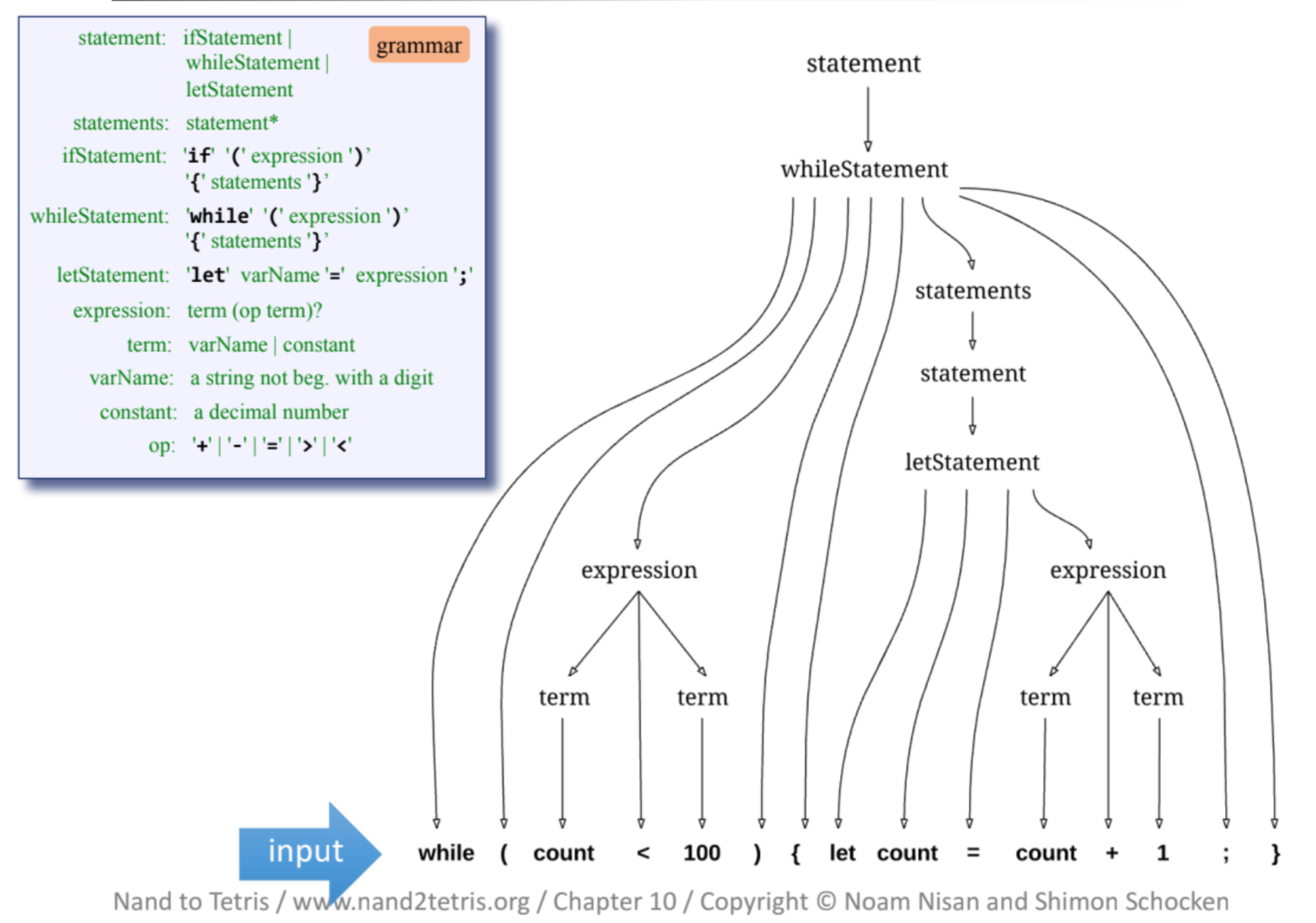 Jack言語を非常にシンプルで簡素なものとして設計しているからに他なりません。例えばJack言語では演算ごとの優先順位を考慮しませんが、これは我々が普段用いているプログラミング言語ではありえないことですよね。(足し算の前に掛け算を行うといった優先順位がない言語なんて見たことがありますか?)