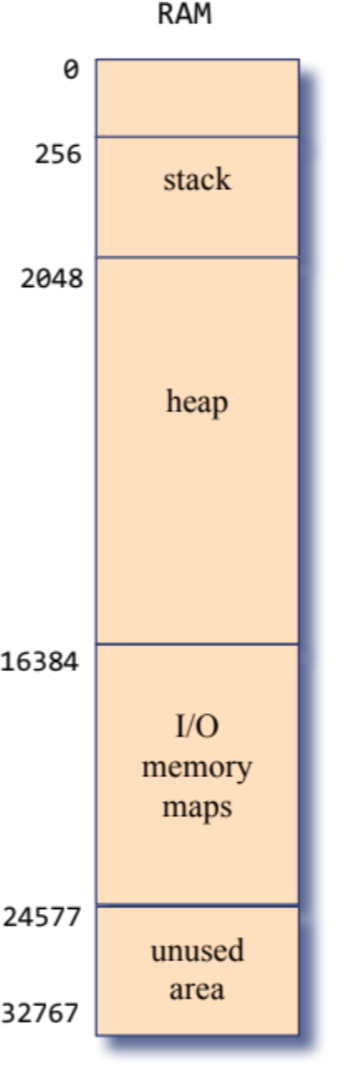 そしてOS は伝統的にalloc()とdeAlloc()という2つの関数を用いてヒープを管理します。(以下はJackメモリのメモリマップ)