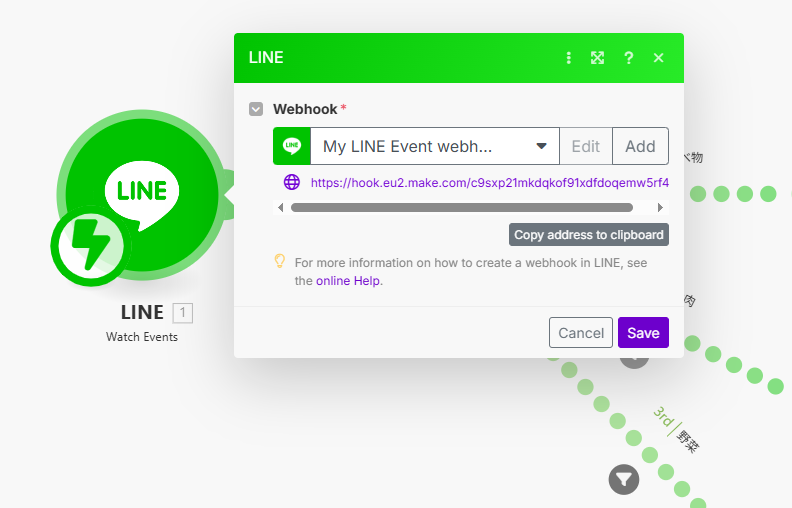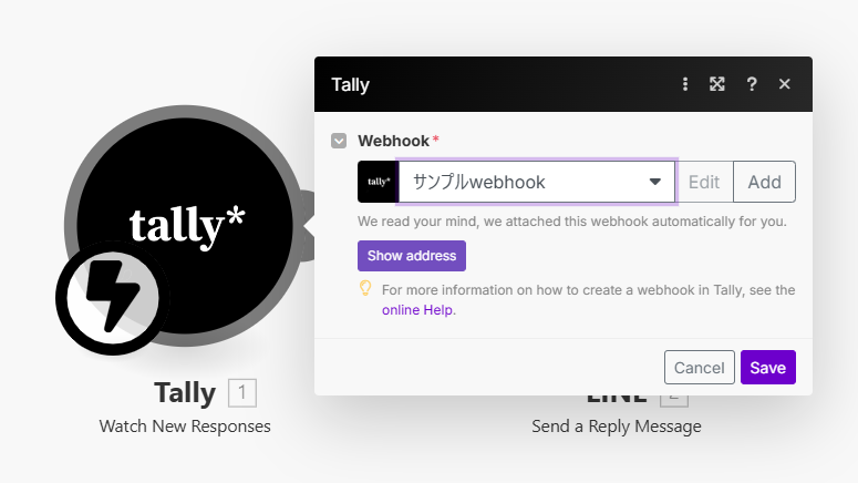 Make で次のように Tally と LINE のモジュールを繋げます。