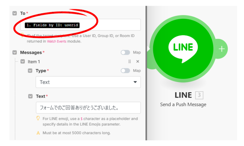 3. Make でユーザー ID をフォームから LINE に渡す