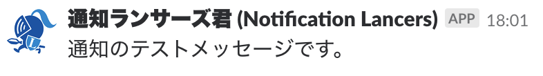 何も指定しない場合は、Slack テスト部屋にランサーズ君が通知してくれます。かわいい。