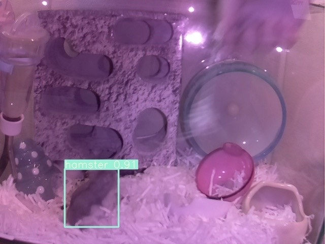 その間違いを減らすために、「覚えさせる物体を増やす」ことで、モデルがそれらを見分けられるように誘導しました。これで、上の写真のような「回し車を誤判定する」のは無くなりました。