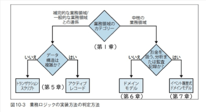第Ⅲ部では、ドメイン駆動設計(DDD)を実践する際の具体的なアプローチや経験則が書かれていた。特に、どの技術方式を選択するかについて、経験則にもとづく判定方法が示されており、この内容が非常にしっくりきた。図を用いて、複雑性や競争優位性、コスト、スピードといった観点で技術を評価するフレームワークが提示されており、実務での応用が明確にイメージできた。