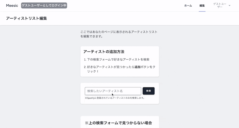 - 編集ページの検索フォームからアーティストを検索