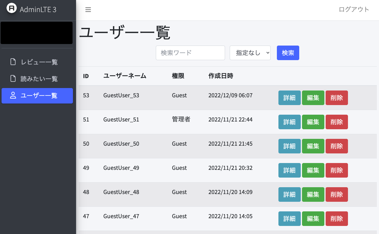 管理者のみユーザーや投稿の情報を編集可能にしています。