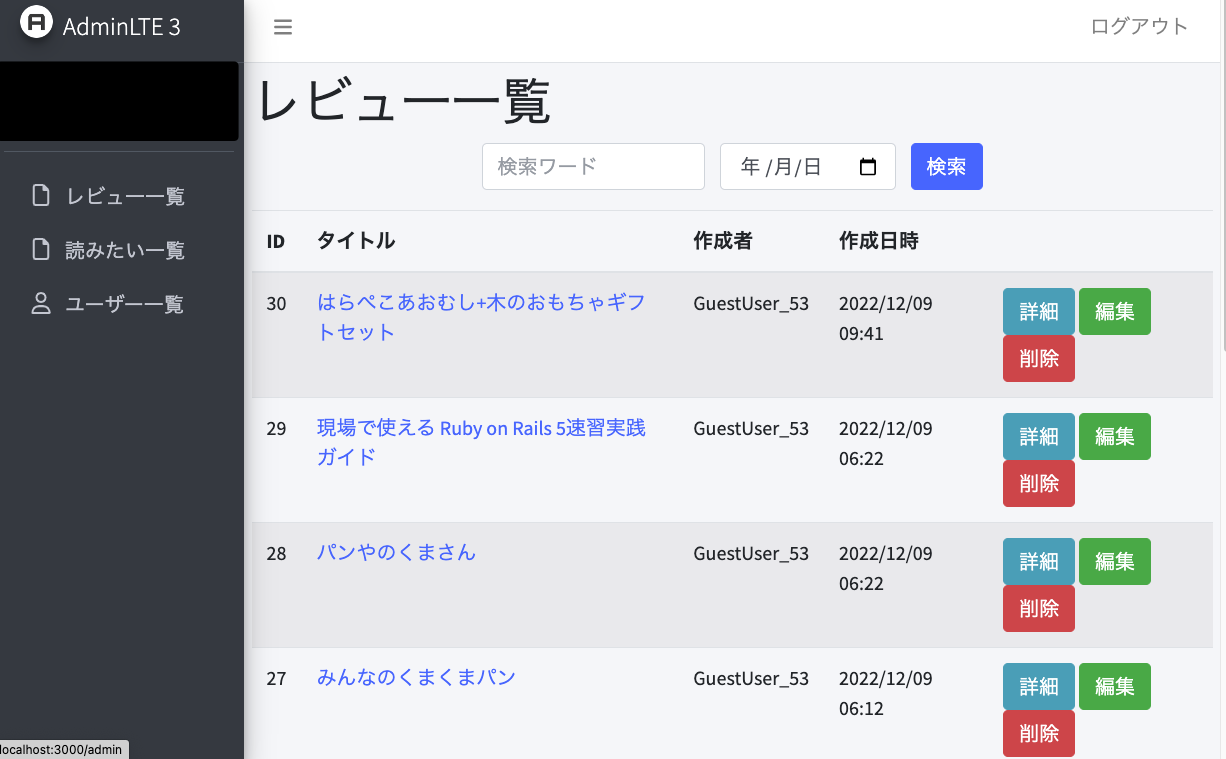 | ユーザー情報編集 | レビュー・読みたいリストの編集 |