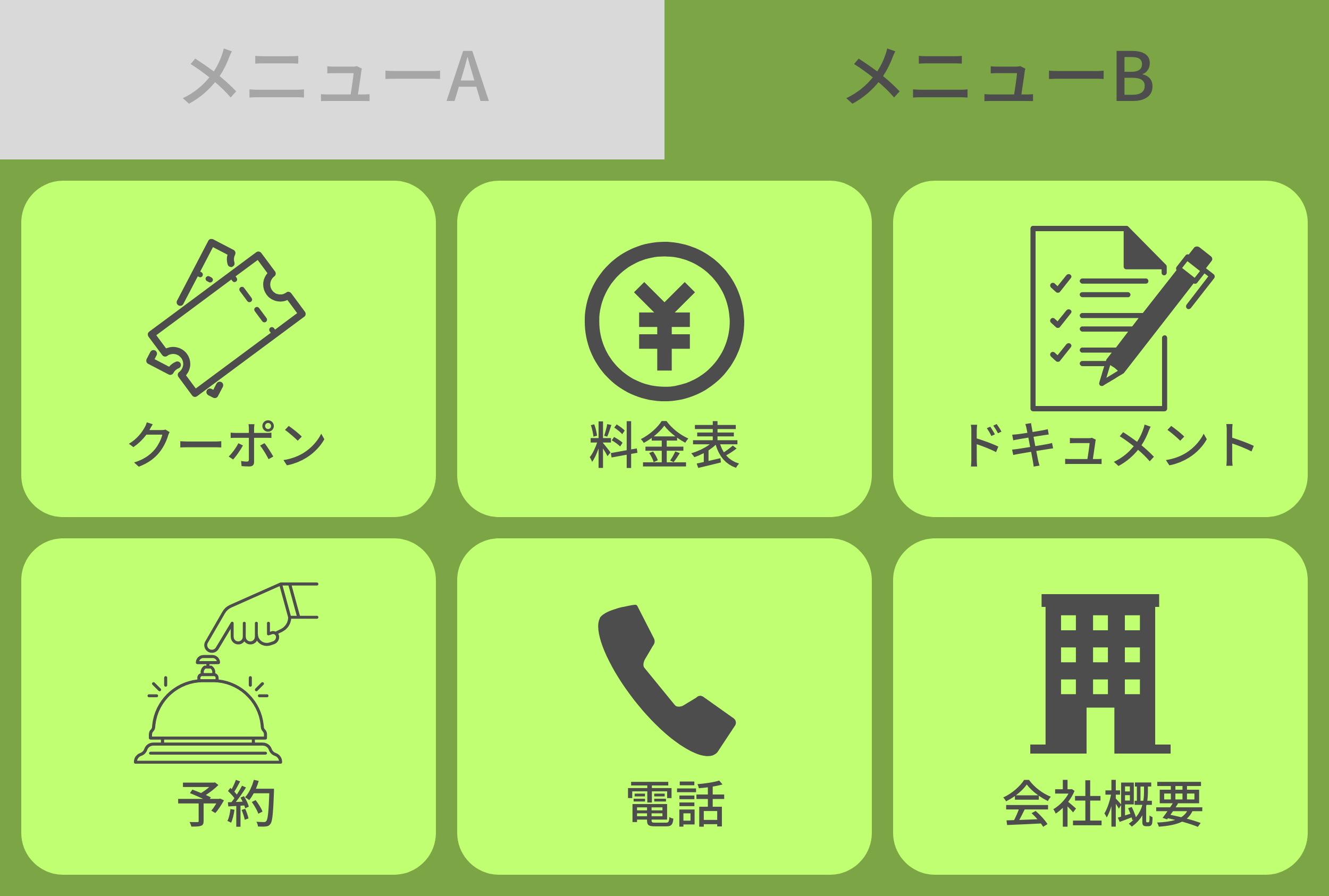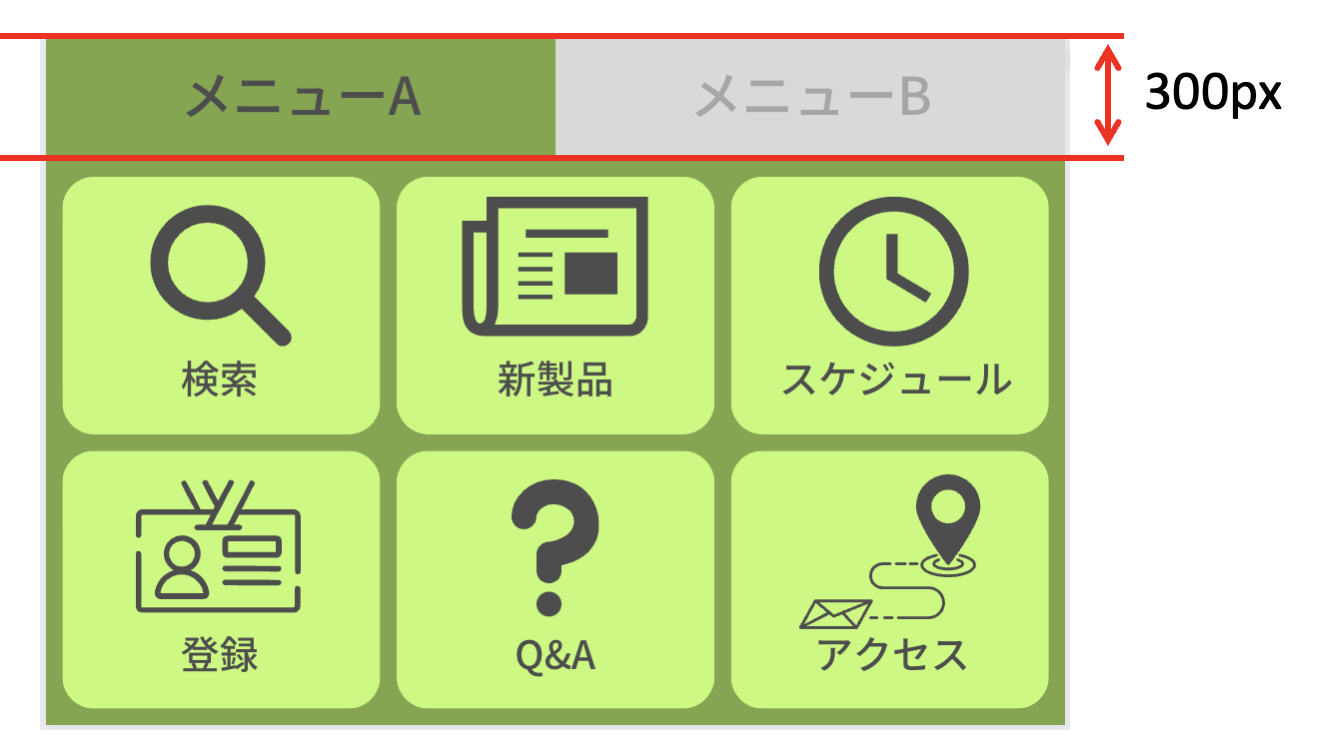 - リッチメニューAへ切り替えるタブ部分の座標やアクションが先ほどとは異なるので、間違えないようご注意ください。