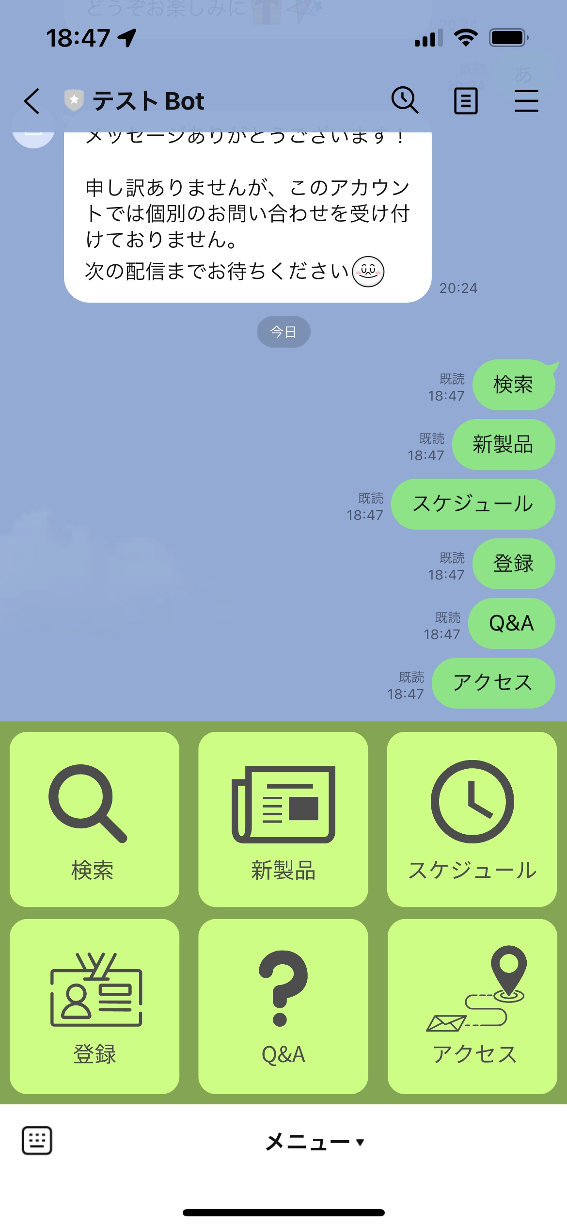 - これで、エイリアス切り替えタイプのリッチメニューのアップロード&設定完了です。
