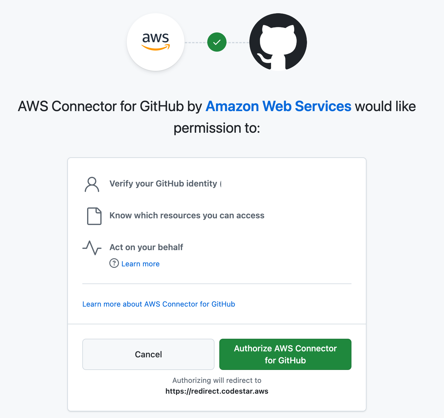 - AWS CodeStar Connectorアプリをインストールすると、AWSはサードパーティアカウント内のリソースにアクセス可能