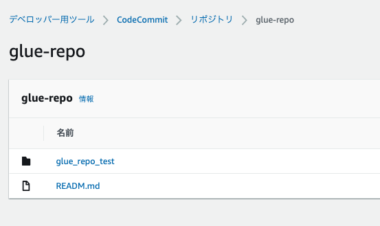 - Folderには、「glue_repo_test」を指定