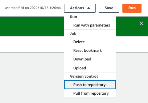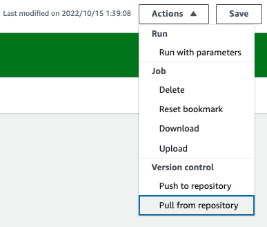 - AWS Glue Studio で AWS Glue ジョブを編集し、それらをリポジトリへ同期
