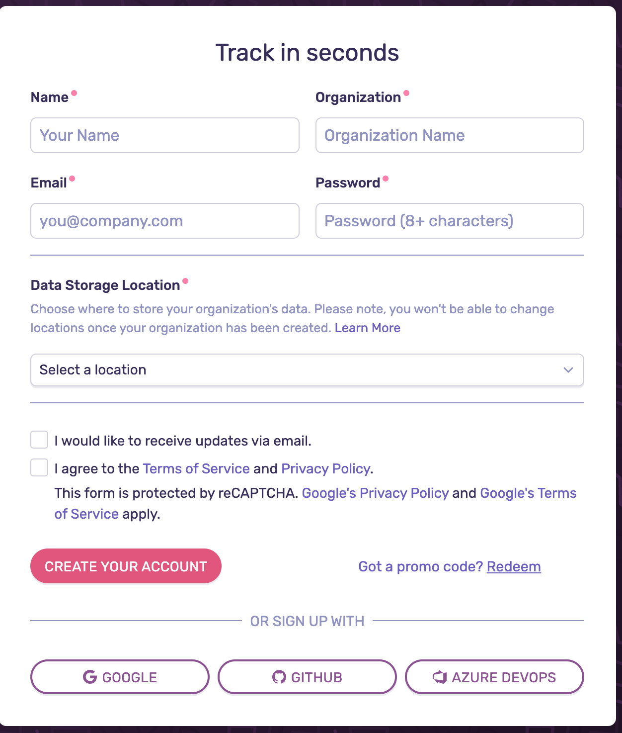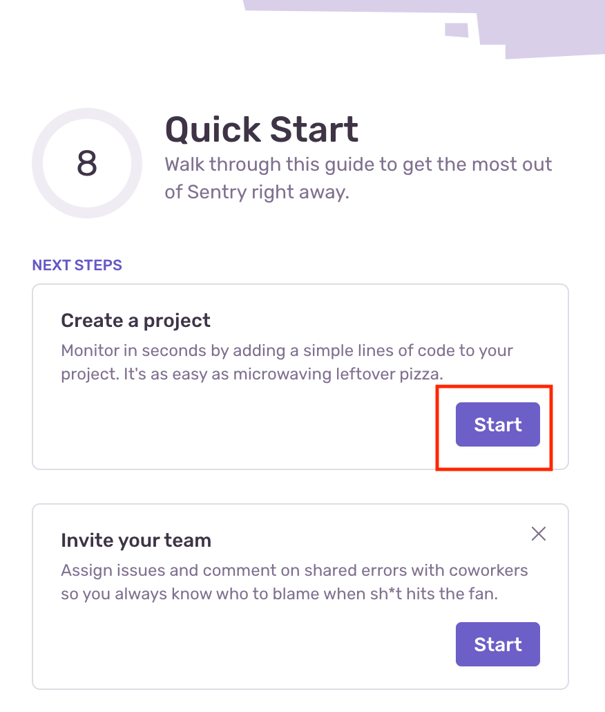 sentry.ioから「GET STARTED」をクリックします