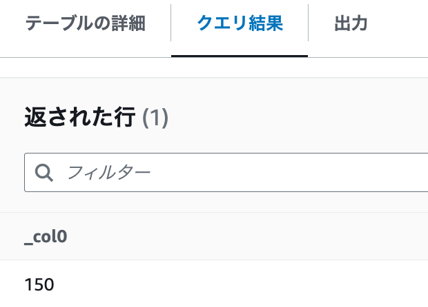 - 下記のクエリを確認します。1レコードしか入っていませんでした。